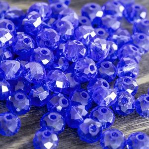 бусина, стекло абакус 8, граненая, цвет голубой, 8х6 мм