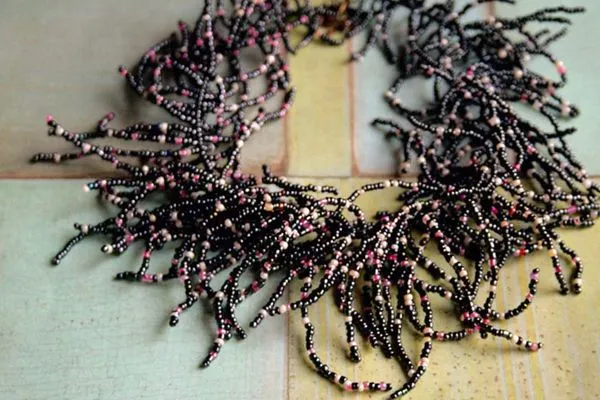 12. Для первого раза советую взять однотонный бисер или с вкраплениями, как на нашем примере.