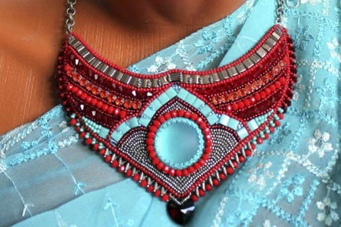 1. Я работу всегда начинаю с эскиза. Верх колье вышиваю бисером тила.