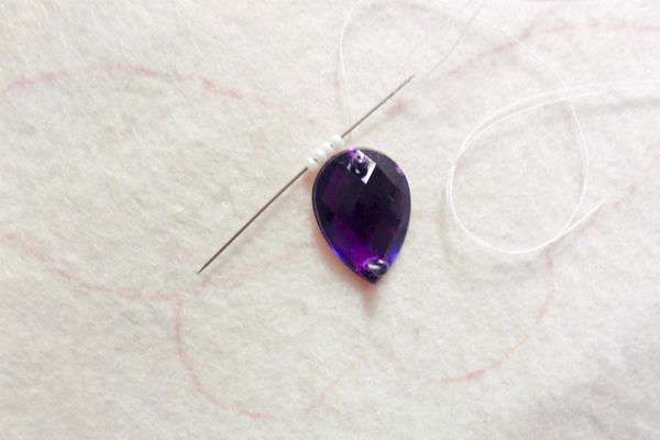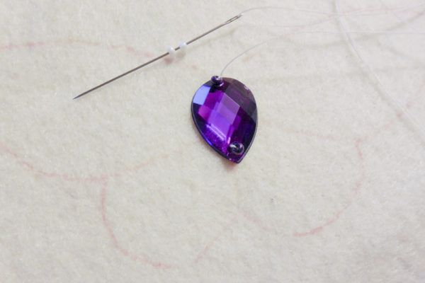 2. Начинаем делать тельце бабочки. Пришиваем страз к фетру.