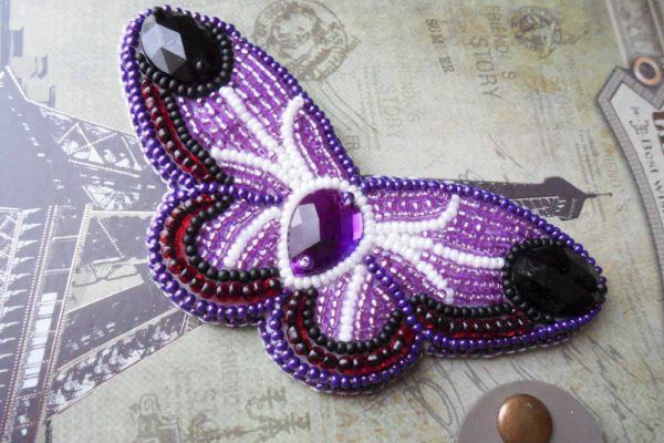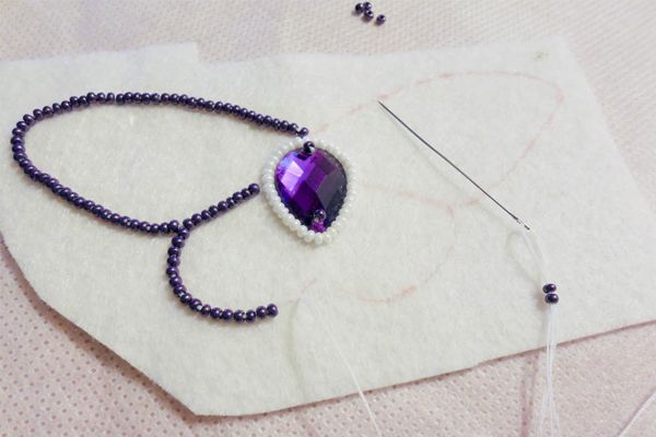 9. Обшиваем темно-фиолетовым край бабочки таким же способом, как и обшивали страз.