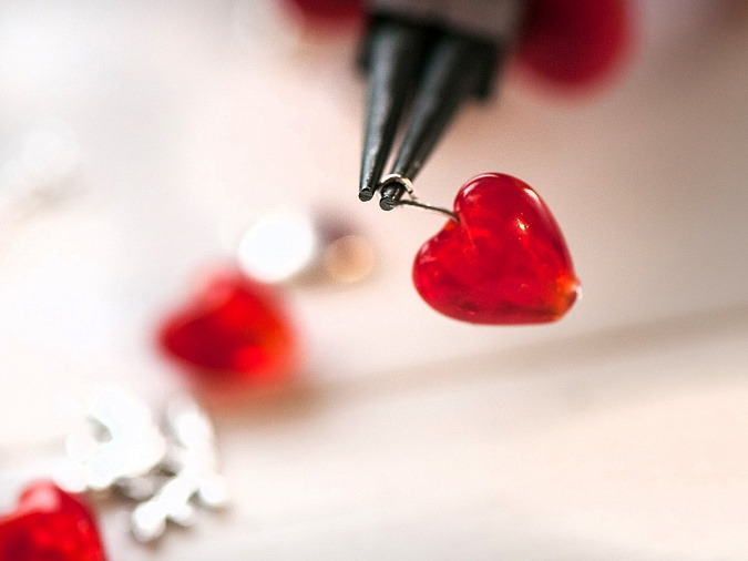 • 10. Критически оцениваем работу или просто любуемся результатом! Теперь каждый заметит, что вы готовы к празднику! Цвет бусин можно подобрать в тон к сумочке или платью, тем более что мы подготовили для вас специальную Сердечную Коллекцию как раз к 14 февраля