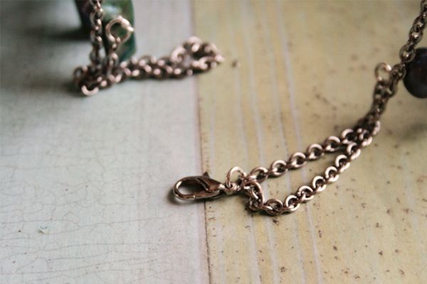 7. Ставим цепь. Отрезаем цепь длиной 4 см – 4 шт. прикрепляем к каждому из колечек, прикрепляем с помощью соединительного кольца.