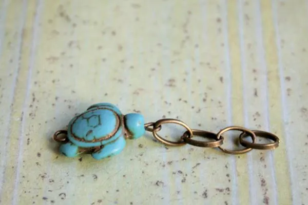 5. Обратите внимание, что при работе с цепями с крупными звеньями, звенья расцепляем с помощью круглогубцев! Присоединяем отрезок цепи к черепахе (петельке)