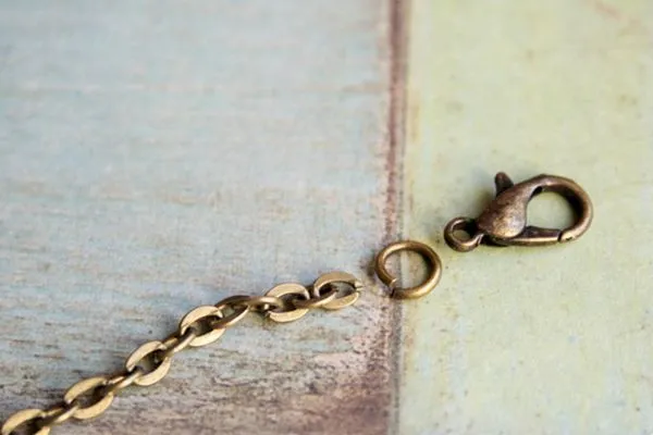 12. с другой стороны, через колечко, присоединим отрезок цепи с размером звена 5х6, для того чтобы можно было регулировать длину колье.
